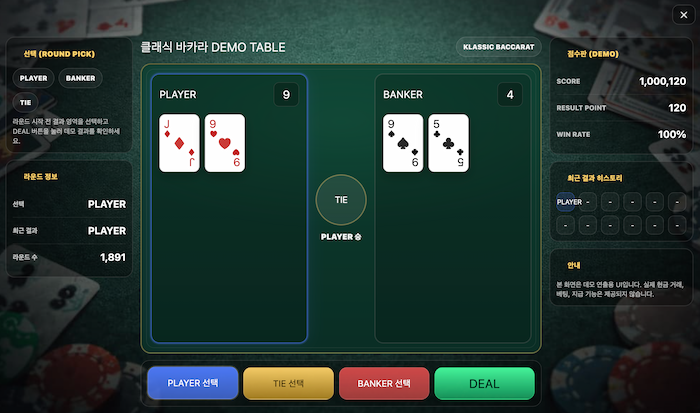 클래식 바카라 DEMO TABLE